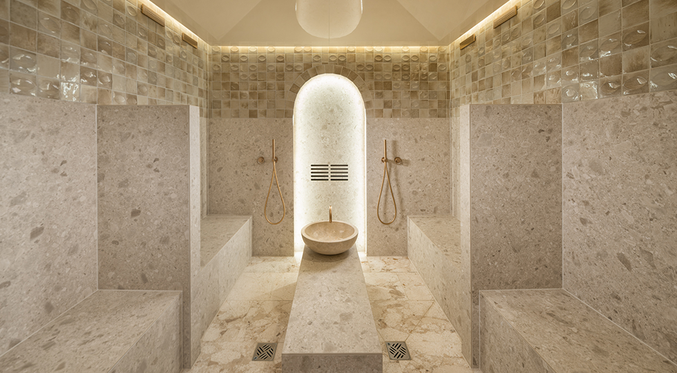 "Hamam": Efter et varmende dampbad med aromaduft tager din hamam-mester imod dig med en kropspeeling på en varm navlesten. Ceremoniens højdepunkt er den traditionelle sæbeskumsmassage: En rensning af krop og sjæl, som afsluttes med en dybt afslappende hvilepause i en behagelig vandhimmelseng. • Hamam-ceremoni for én eller to personer 60 min. plus hvilepause. Pris 1.300 kr. eller 2.250 kr./par.